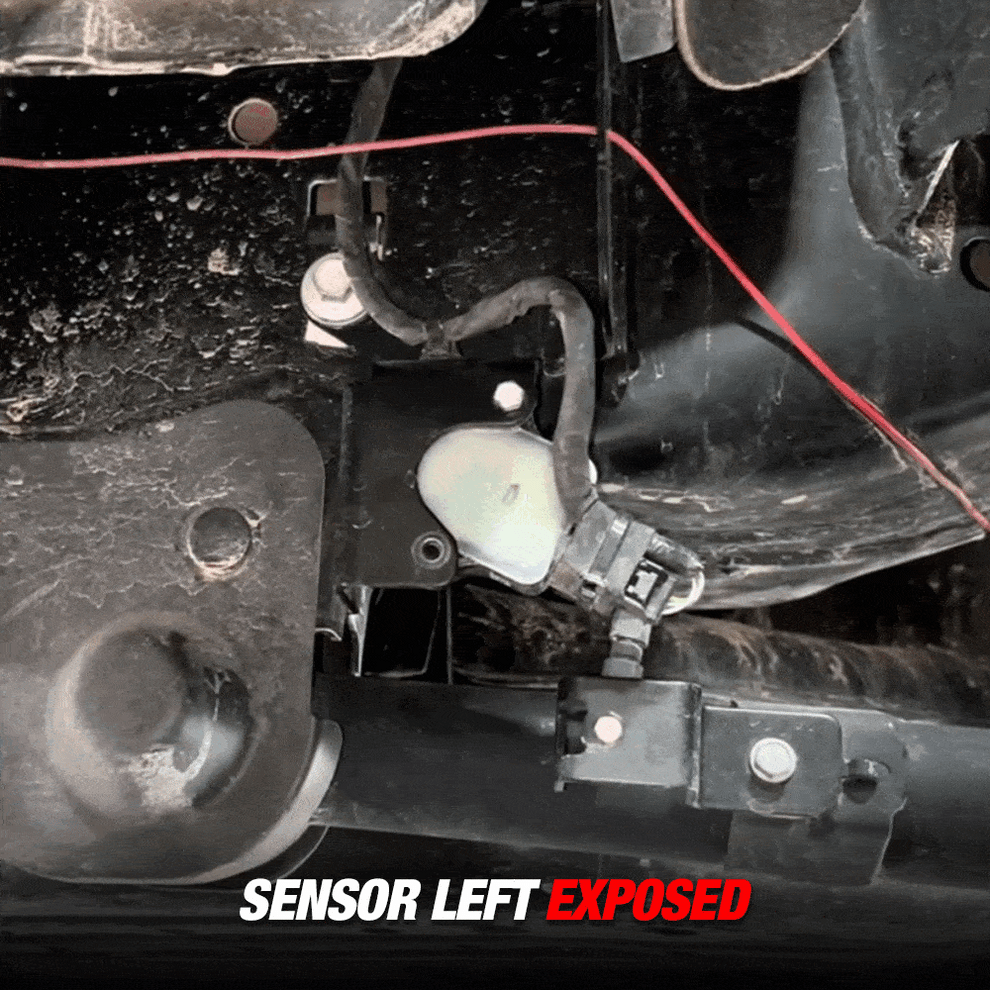 The trailing arm sensor was left exposed from the factory. Leaving it prone to becoming disconnected or broken. The S&B easily covers the sensor by reusing the OEM bolts and nuts.