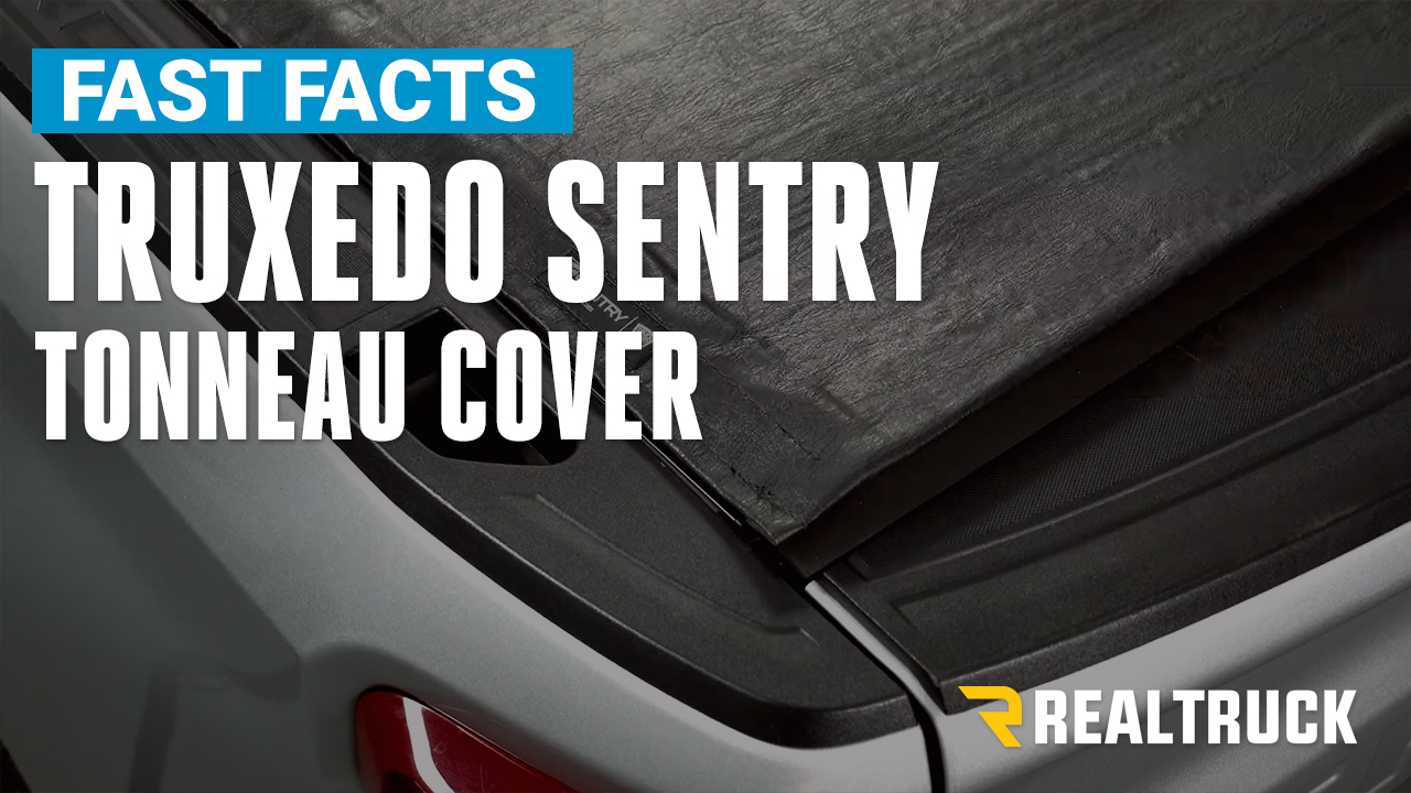 The TruXedo Sentry tonneau cover is a hard roll-up cover that features interlocked aluminum slats for added protection. The aluminum slats are pressure bonded to an industrial-grade, gloss vinyl cover. The vinyl is UV resistant and has a leather-grain finish, and the aluminum slats are finished in matte black to add that clean, blacked out look. This cover functions like a soft roll-up cover, so the truck bed is easily available by simply rolling the cover up. Straps will secure the cover open for driving.